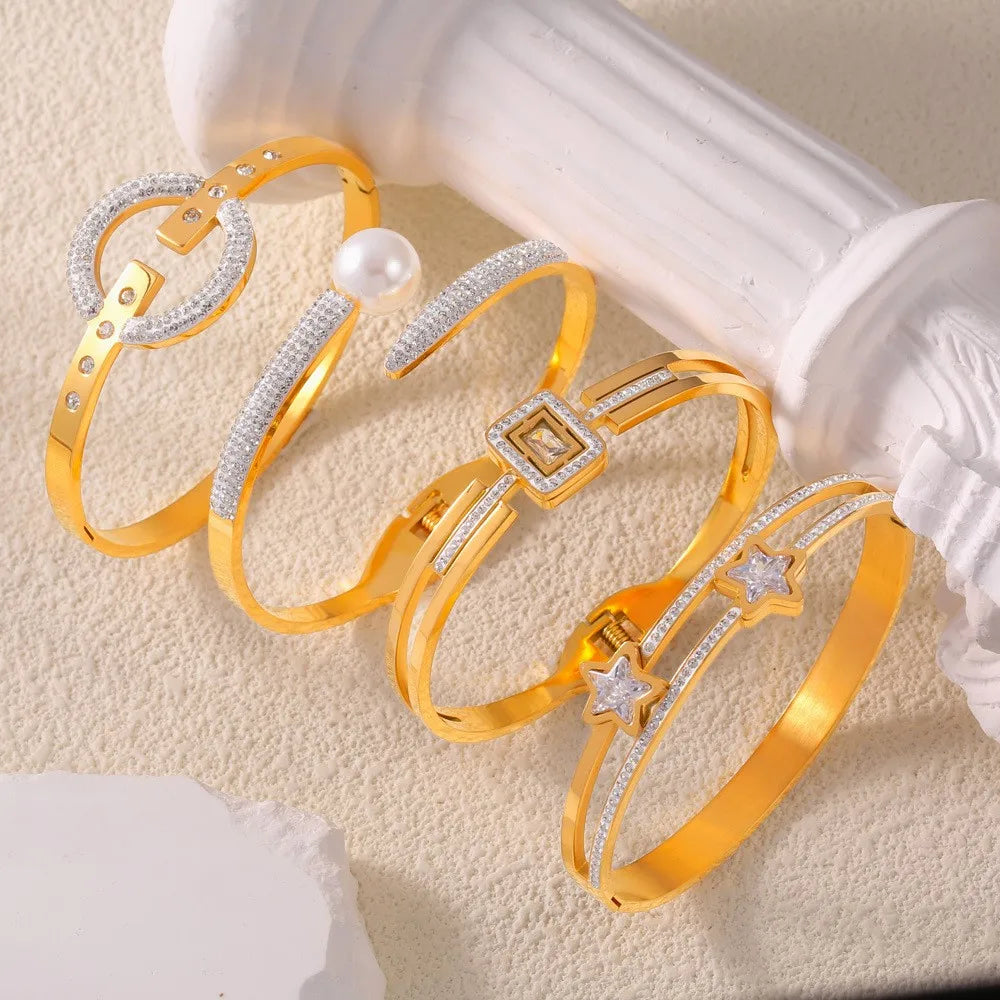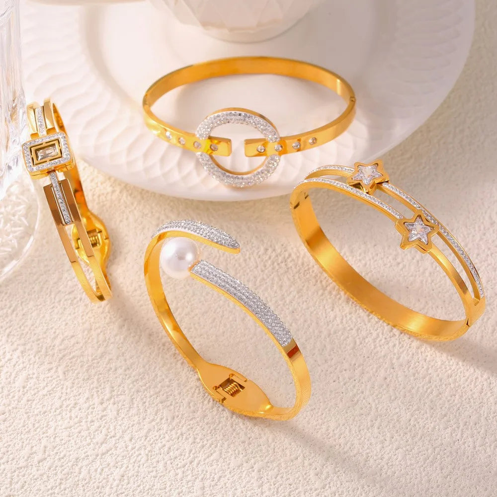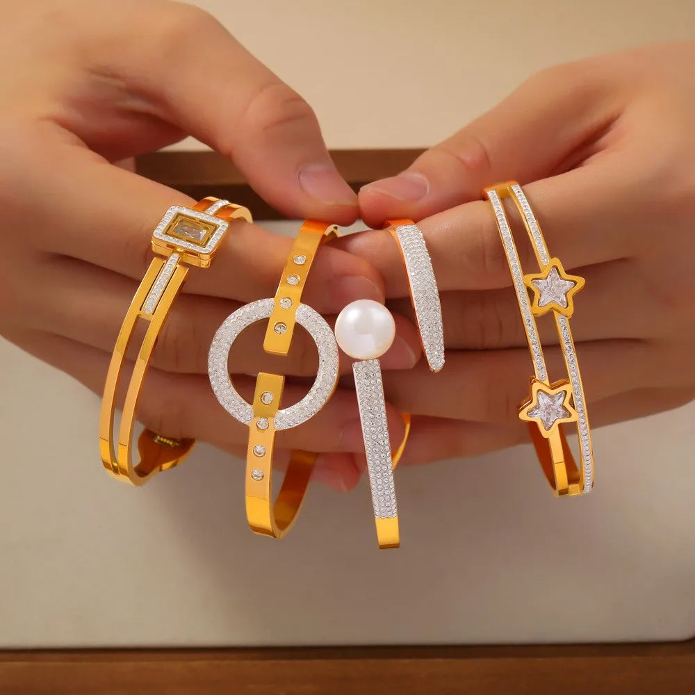 Each handcrafted piece is a symphony of sparkling stars, delicate moons, and luminous pearls, meticulously arranged on a gold-plated chain. This ethereal collection captures the magic of the night sky, allowing you to adorn your wrist with a constellation of dreams.