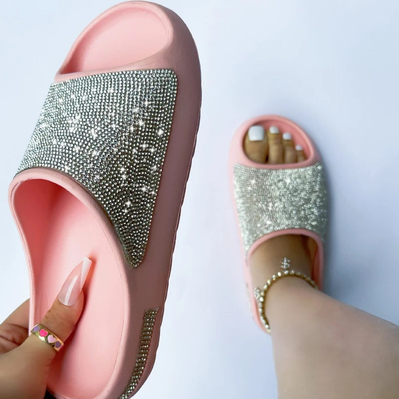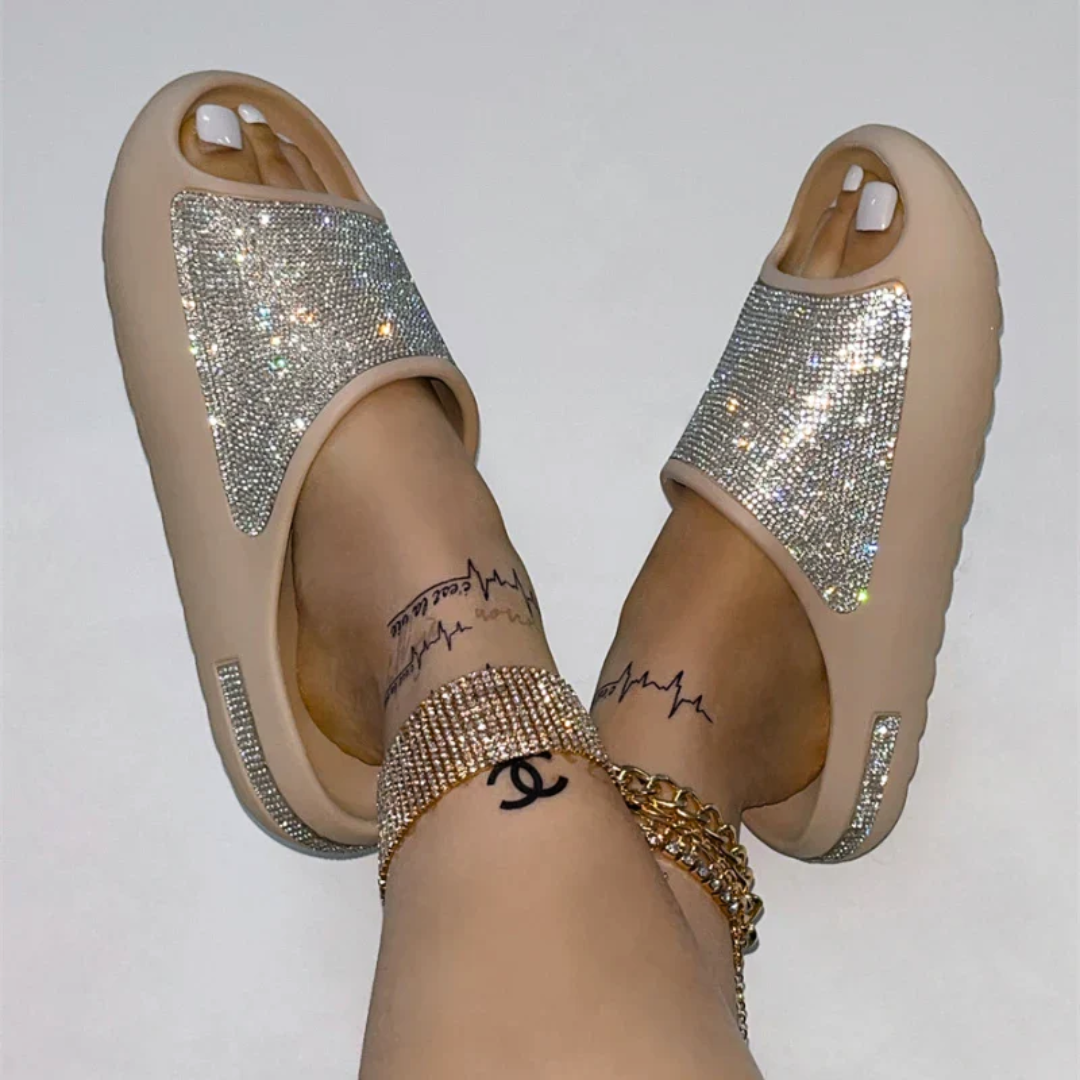The rhinestones are strategically placed to contour the curves of your foot, creating a visually slimming effect that flatters your natural form. The light catches and dances not just on the stones, but on the silhouette they create, making your legs appear longer and leaner.