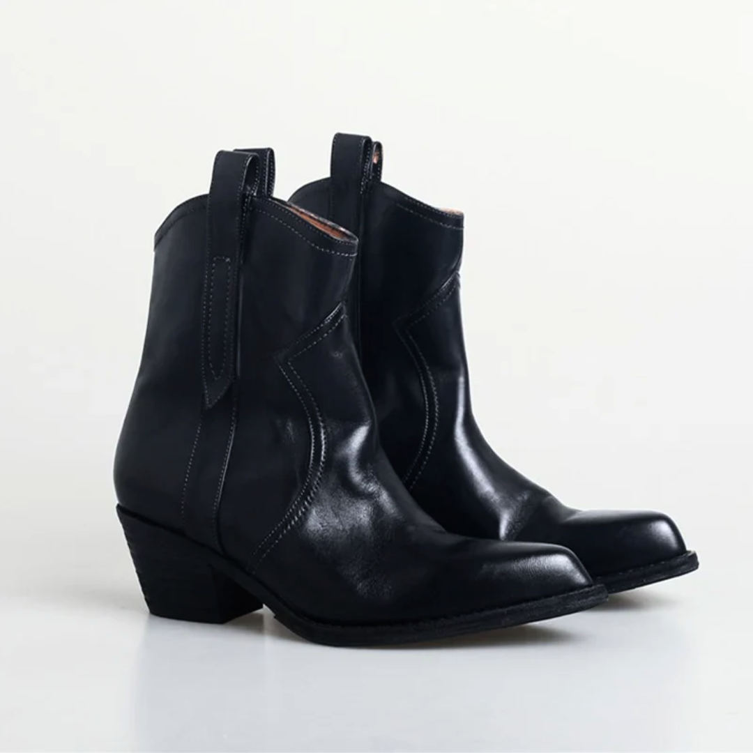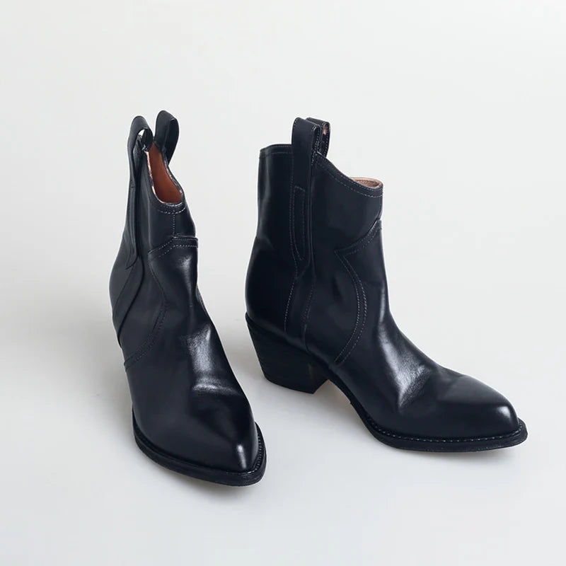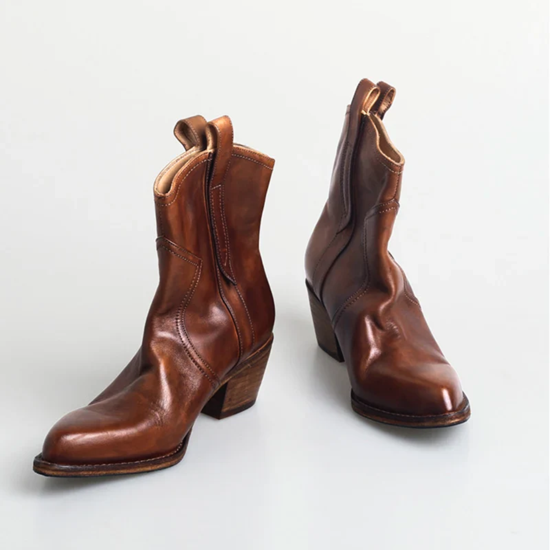 The pointed toes and stacked heels exude confidence, while the supple faux leather ensures comfort with every step. Whether you're two-stepping at a country concert or adding a touch of rugged elegance to your everyday style, these boots are your perfect companion.