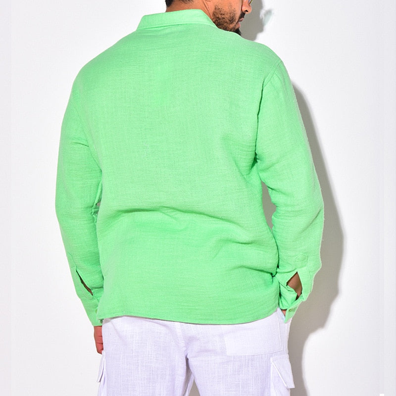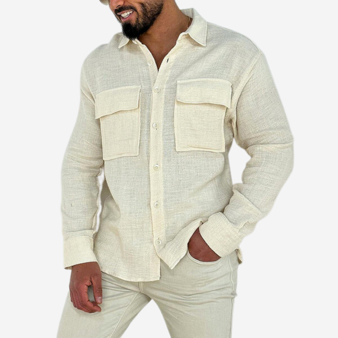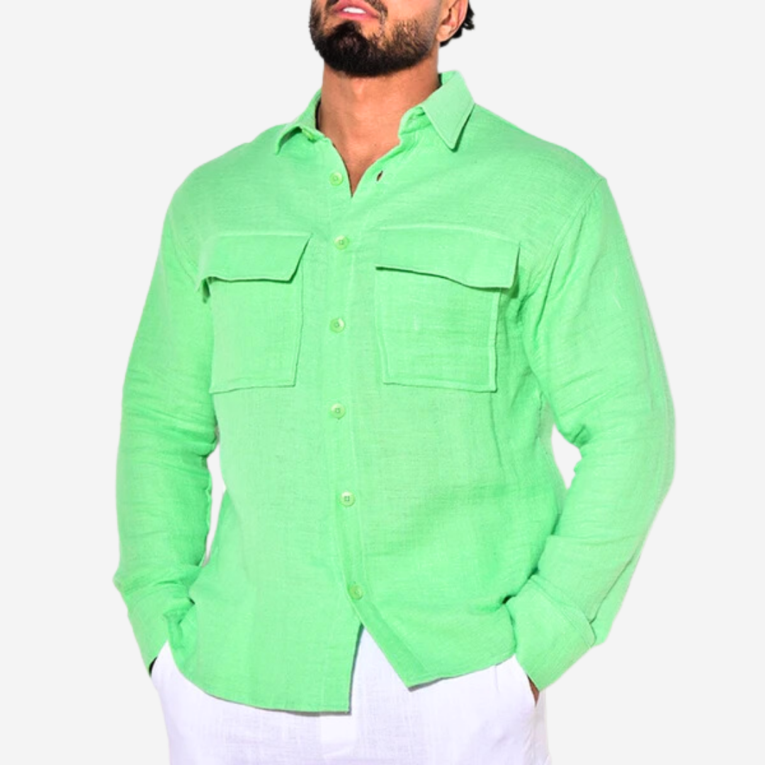 Introducing the perfect fusion of style and utility – the Men's Cargo Shirt. This versatile garment combines the best of both worlds with its blend of cotton and linen, providing unmatched comfort and breathability. The cargo shirt is an ideal addition to any modern man's wardrobe, offering a sleek yet functional look that is perfect for various occasions.