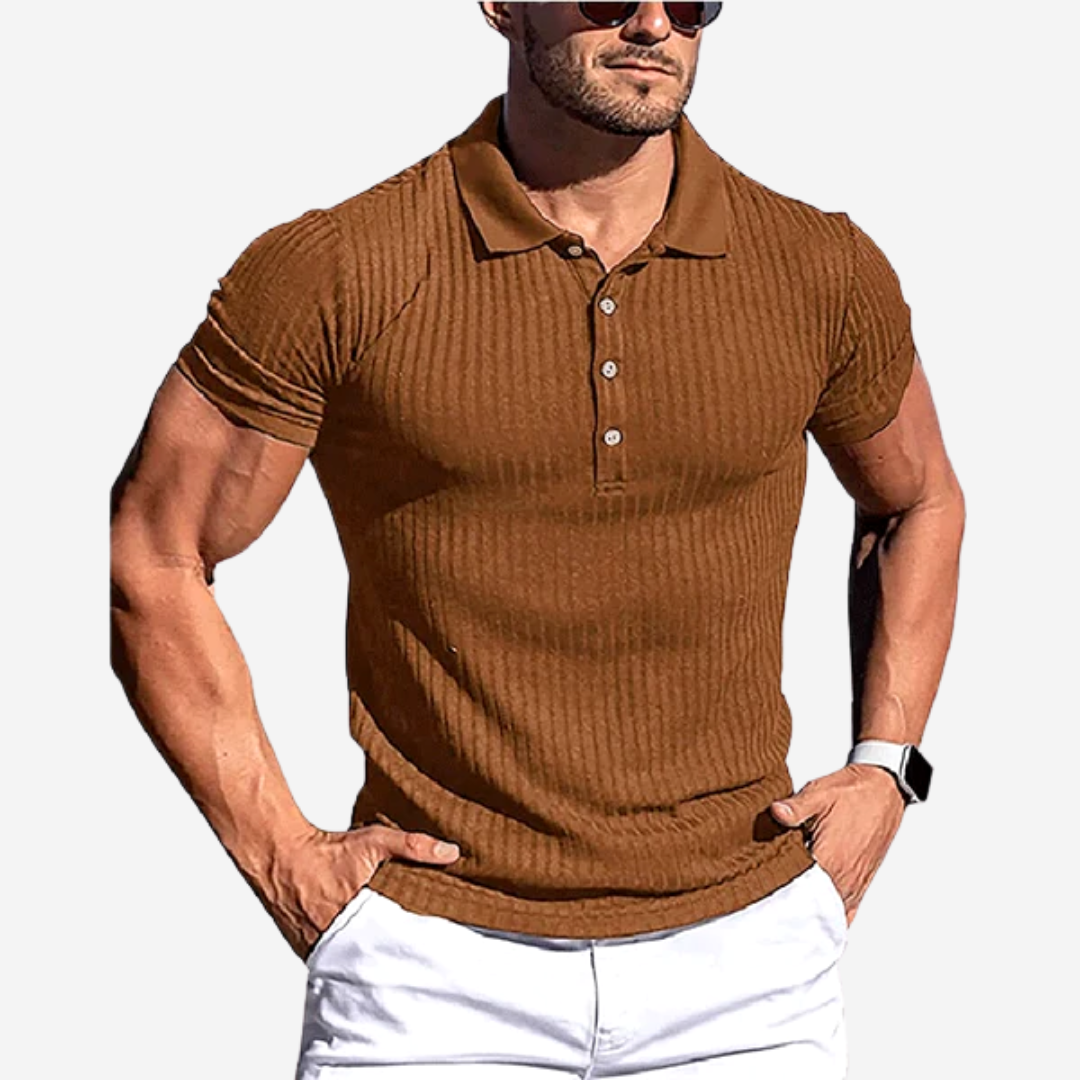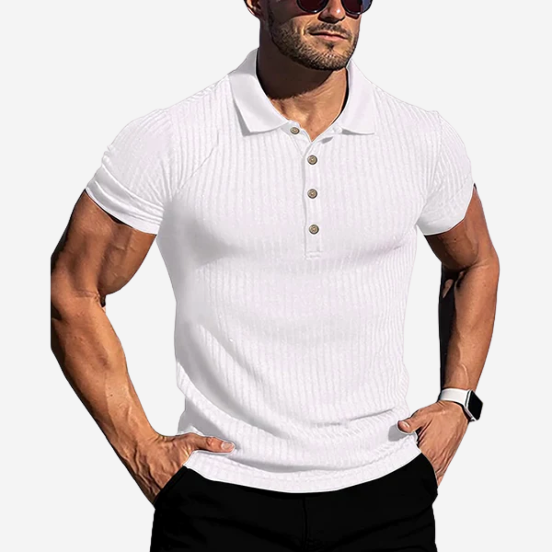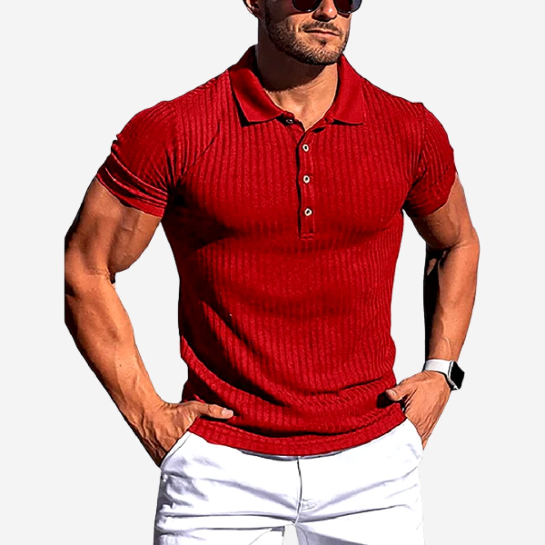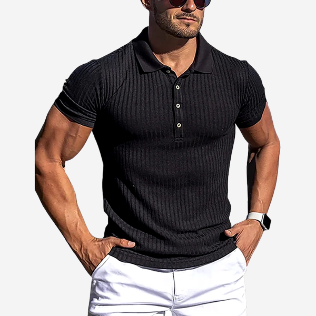 Our Tom Carter Henley Tee is the perfect way to show off your style. This four-button henley tee is made from a blend of polyester and cotton for a comfortable fit and feel. The design features thin stripes for a subtle style.