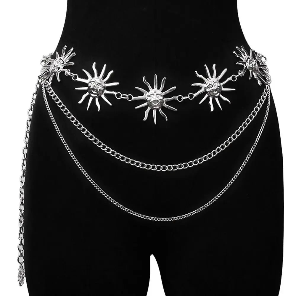 Crank up your silhouette with layered metal drapes and sunburst charms. Part vintage glam, part hip-hop swagger—wear it over jeans or a dress for a confident, show-stopping finish.