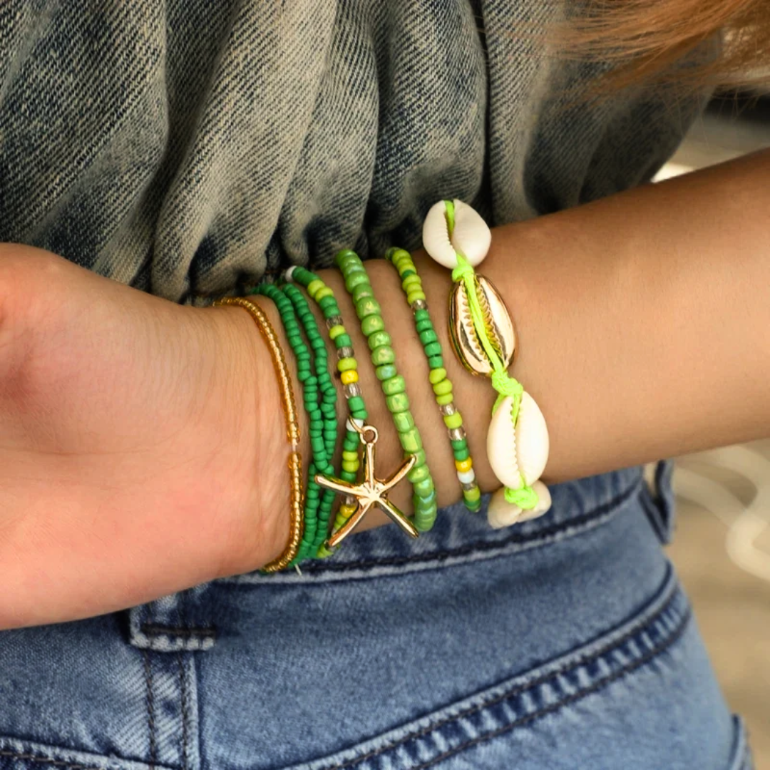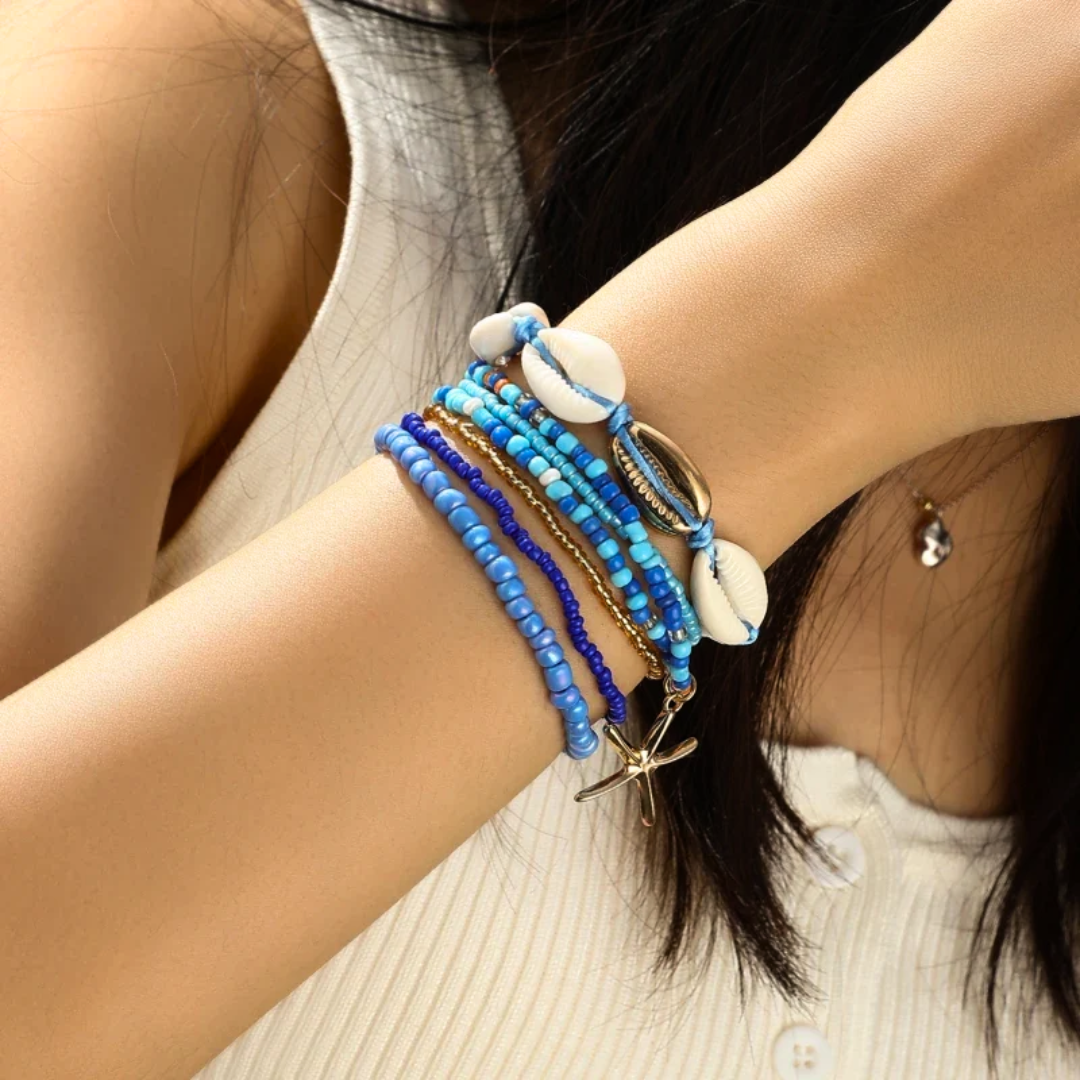 Each piece is a handcrafted treasure, whispering tales of salty breezes and sun-warmed sand. We've meticulously woven natural seashells, glistening starfish charms, and vibrant glass beads into an array of captivating designs.