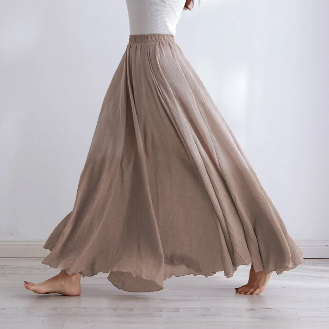 Sway to the rhythm of summer with the Sunwoven Skirt! This long, flowing, and pleated masterpiece offers effortless style and comfort you'll adore. Crafted from our signature breathable linen blend, this skirt is perfect for warm weather and everyday wear.