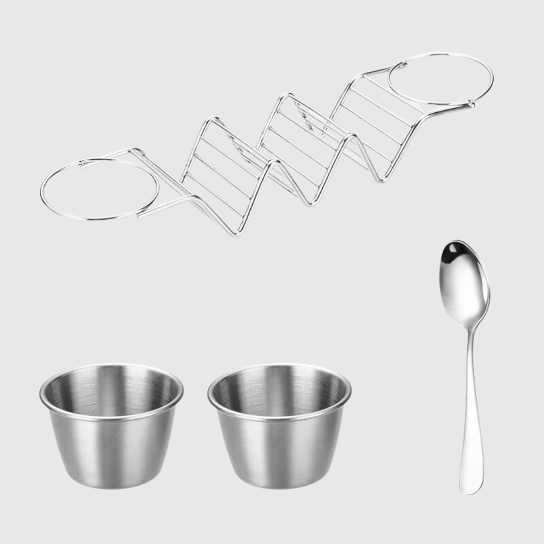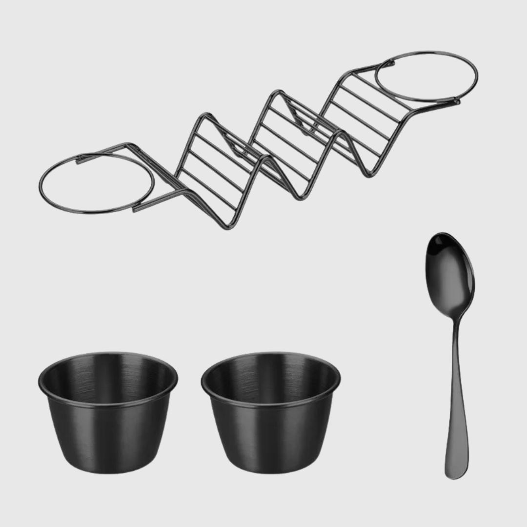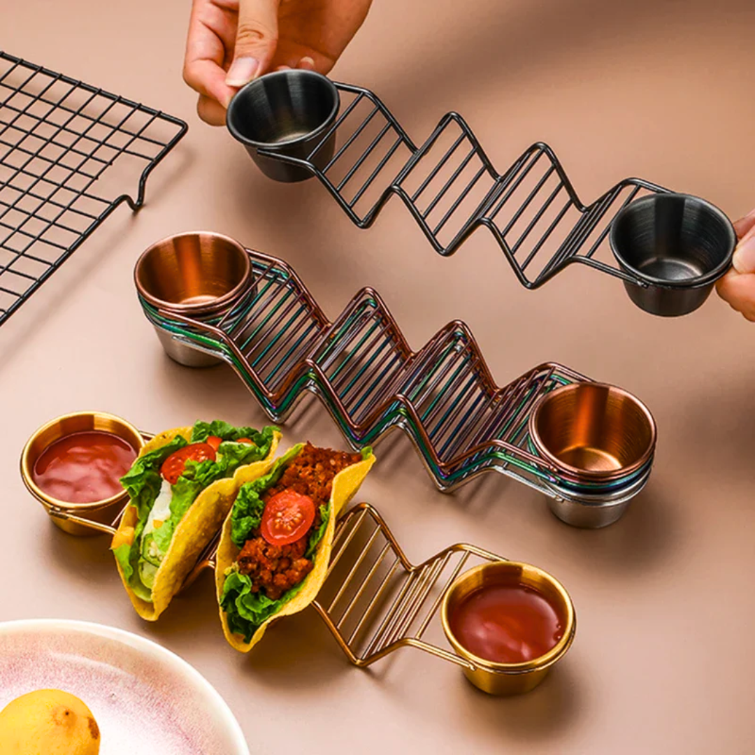This sleek stainless steel taco holder isn't just a kitchen gadget, it's a taco revolution. Each holder cradles three tacos upright, preventing spills and making filling a breeze. Plus, the built-in sauce cups keep your guac and salsa within easy reach.