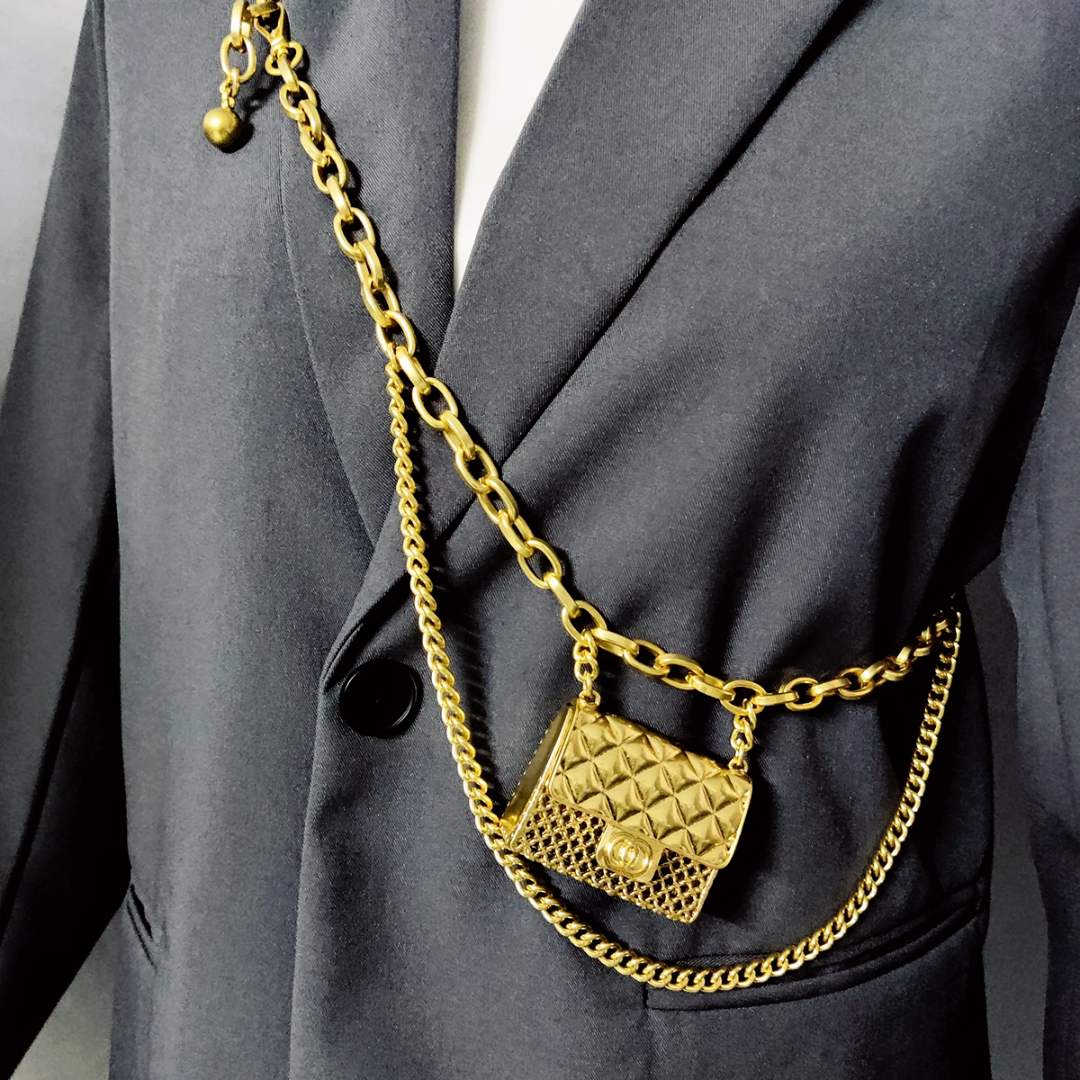This ethereal accessory drapes your waist in gleaming gold, adorned with a delicate tassel that sways with your every step. But the true treasure lies within – a hidden pocket nestled amidst the links, a secret haven for your earbuds or other tiny treasures.