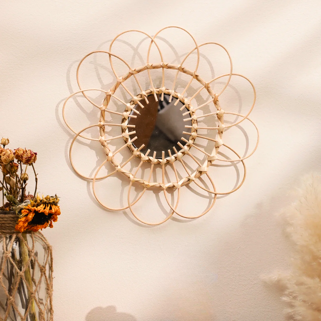 Perfect for adding a touch of warmth and organic elegance to any space, this mirror is a true centerpiece that complements a variety of decors. Whether it's welcoming guests in the foyer or brightening up a cozy living room, this mirror brings a sunny disposition to your home.