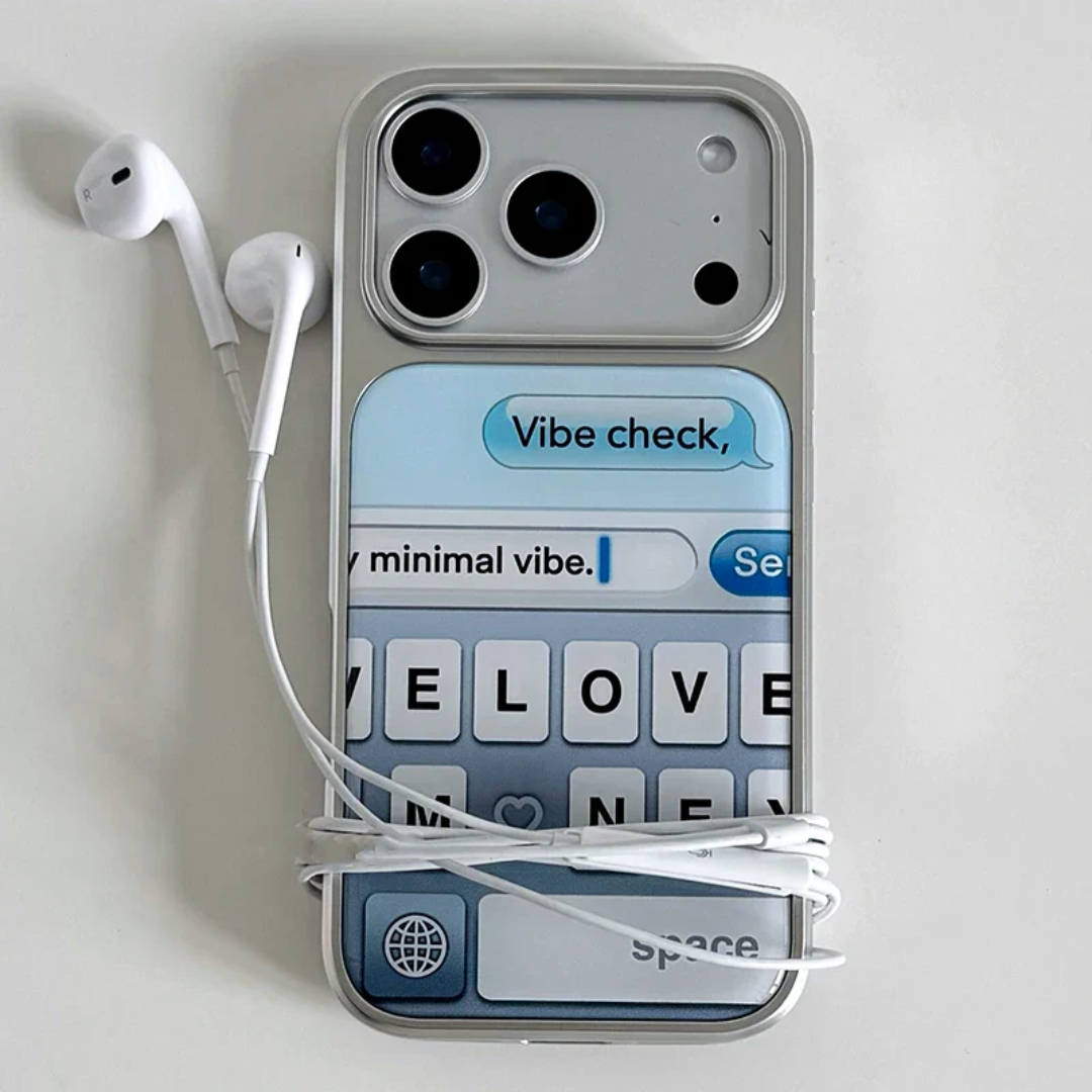 A graphic rendering of a message interface layered beneath a smooth protective shell. Playful in reference, clean in execution.