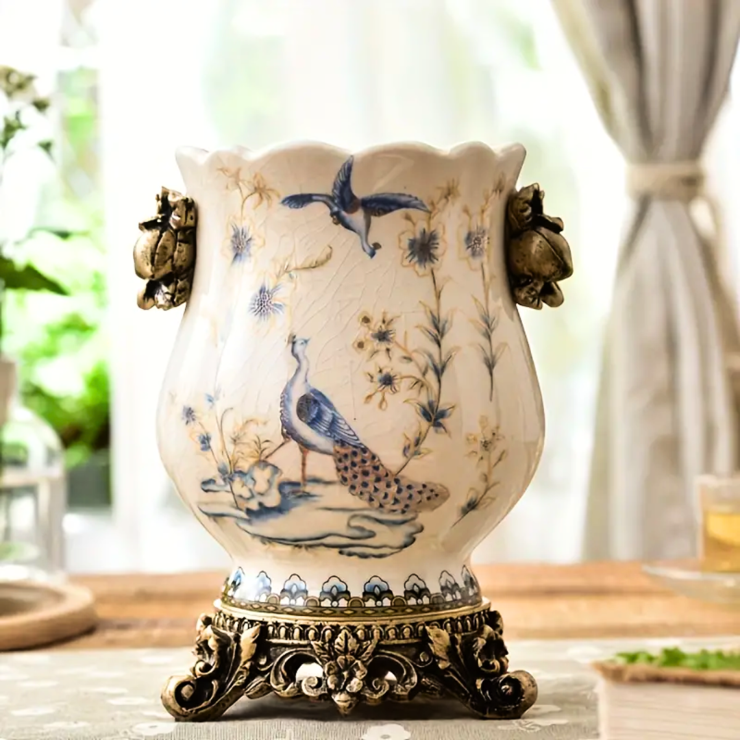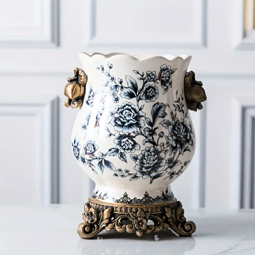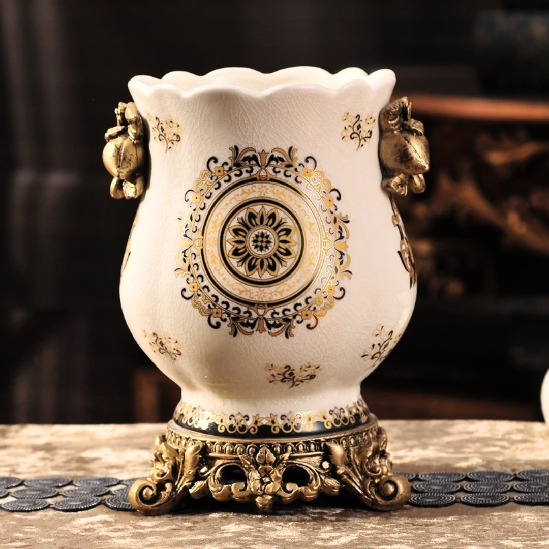 Every vase is adorned with meticulously hand-painted patterns, drawing inspiration from the rich legacy of antique Chinese porcelain. Hand-applied gold accents embellish the rims, handles, and bases, adding a touch of opulence to the classic designs.