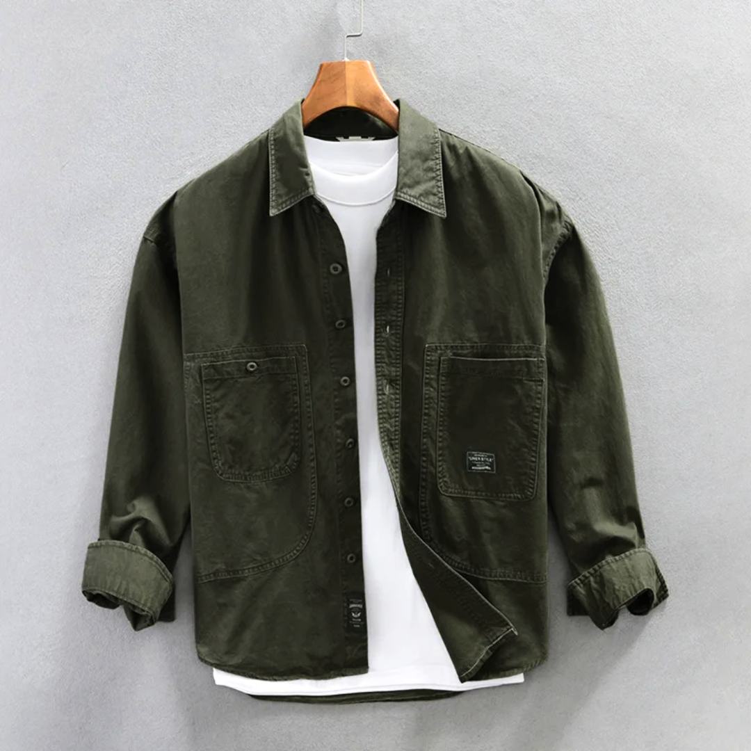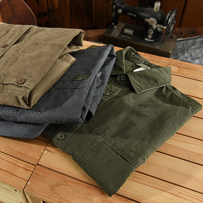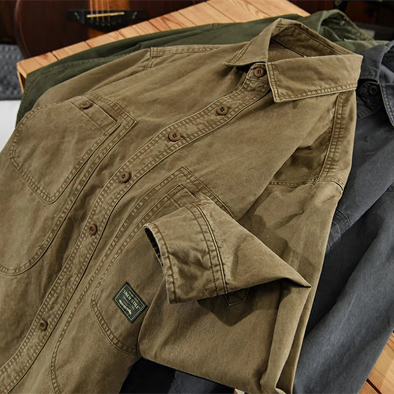Crafted from durable 100% cotton, this versatile shirt jacket effortlessly transitions from the job site to the weekend. Its rugged design, featuring multiple pockets and a classic collar, is inspired by vintage Americana, while the modern fit ensures you look sharp wherever you go.