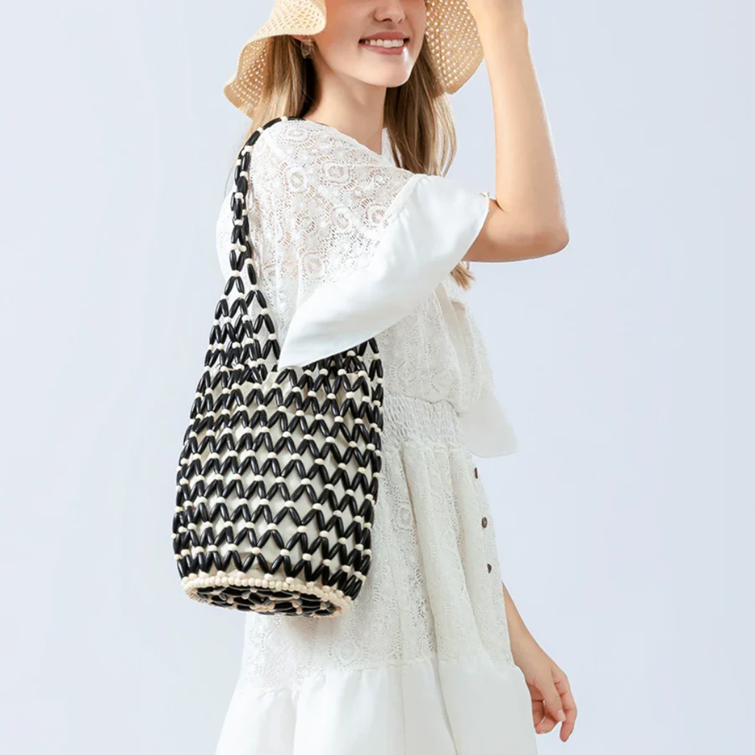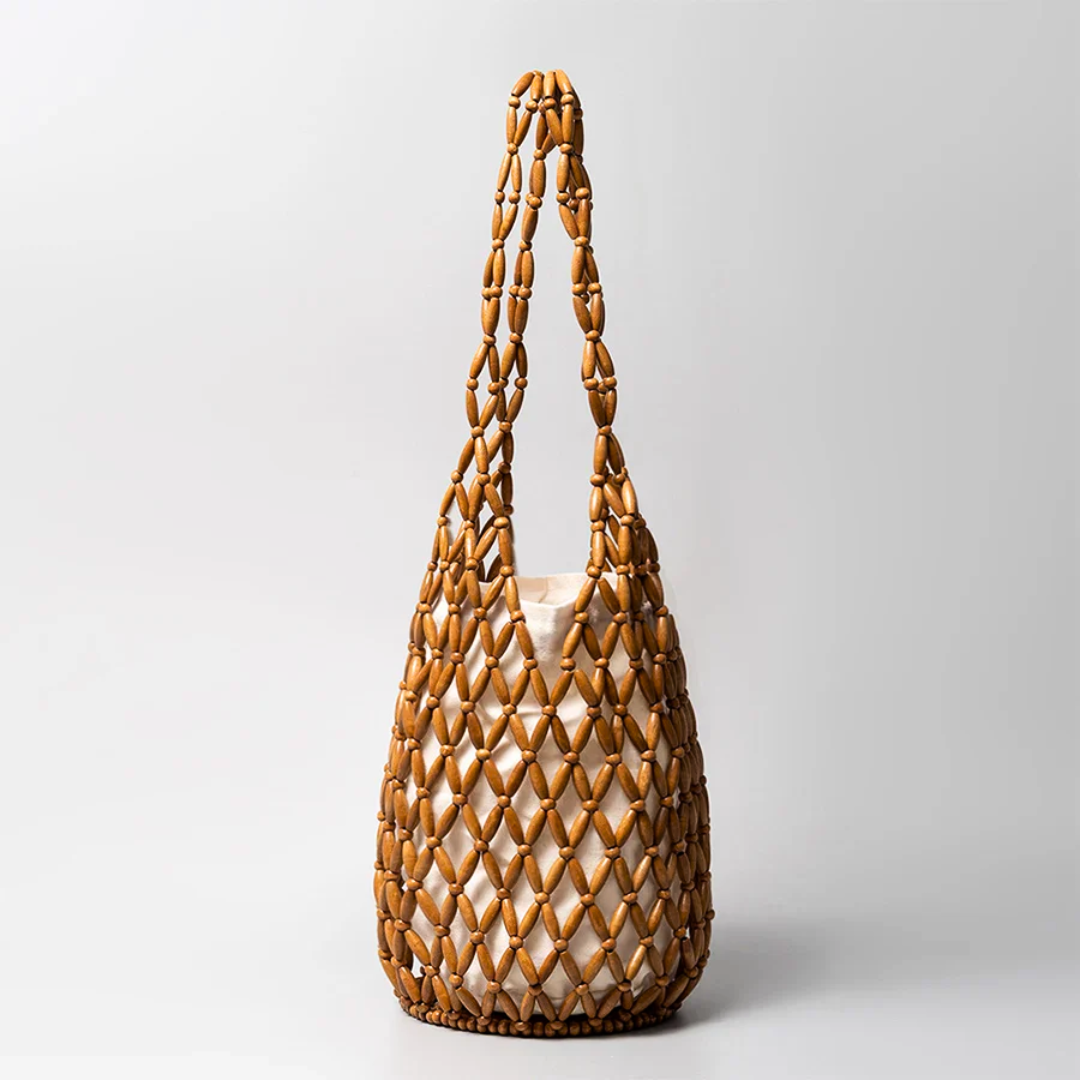 Handwoven with an intricate open weave pattern, this tote exudes effortless sophistication and understated luxury. Crafted from premium, eco-conscious materials, it's a testament to both artistry and sustainability.