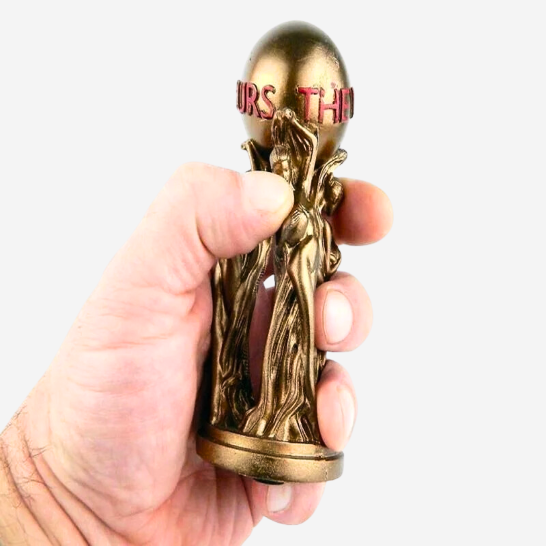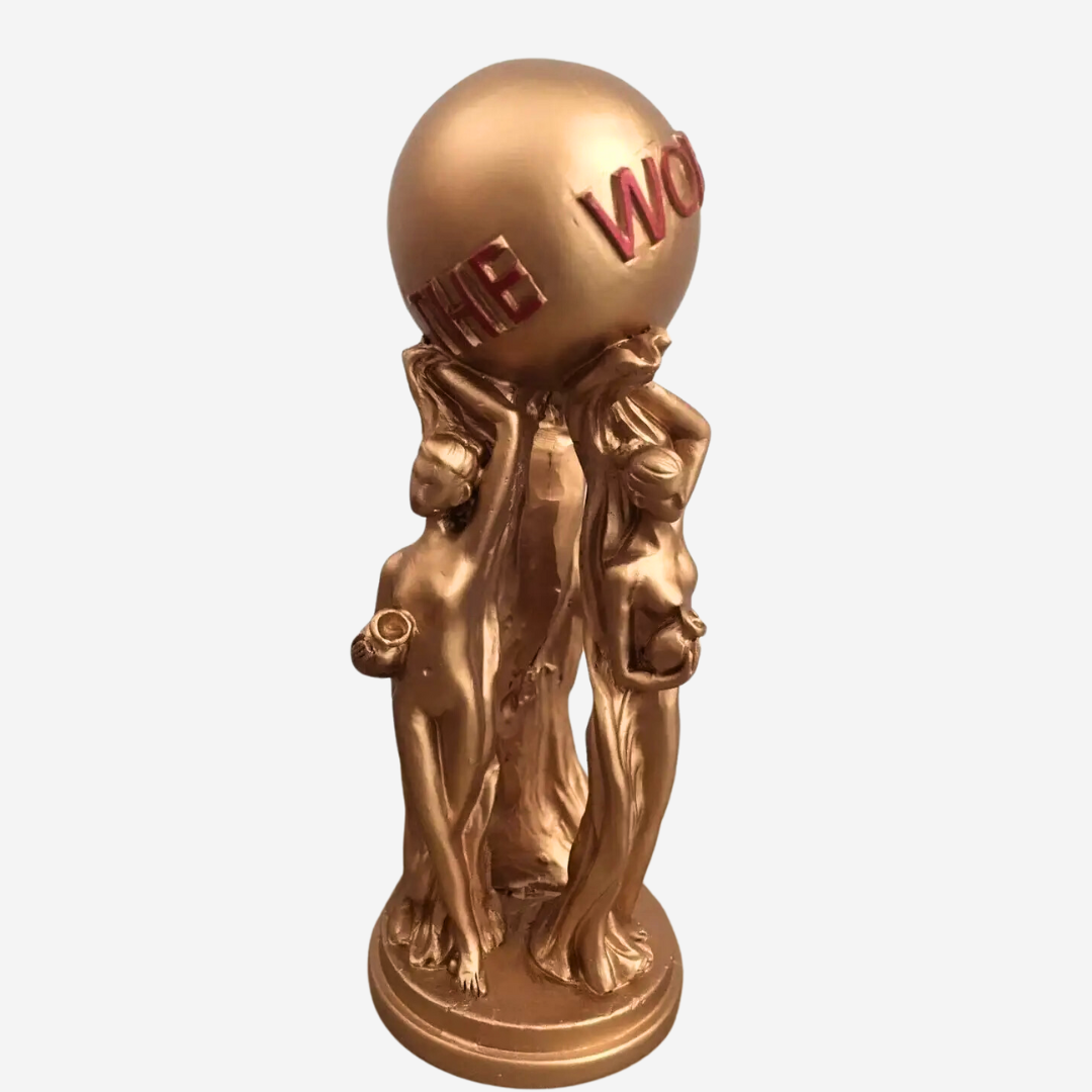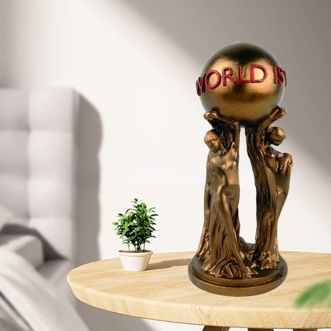 Embrace your ambition with this meticulously crafted resin sculpture, inspired by the iconic "The World Is Yours" statue from the film "Scarface." This striking piece serves as a powerful reminder that with determination and grit, anything is possible.