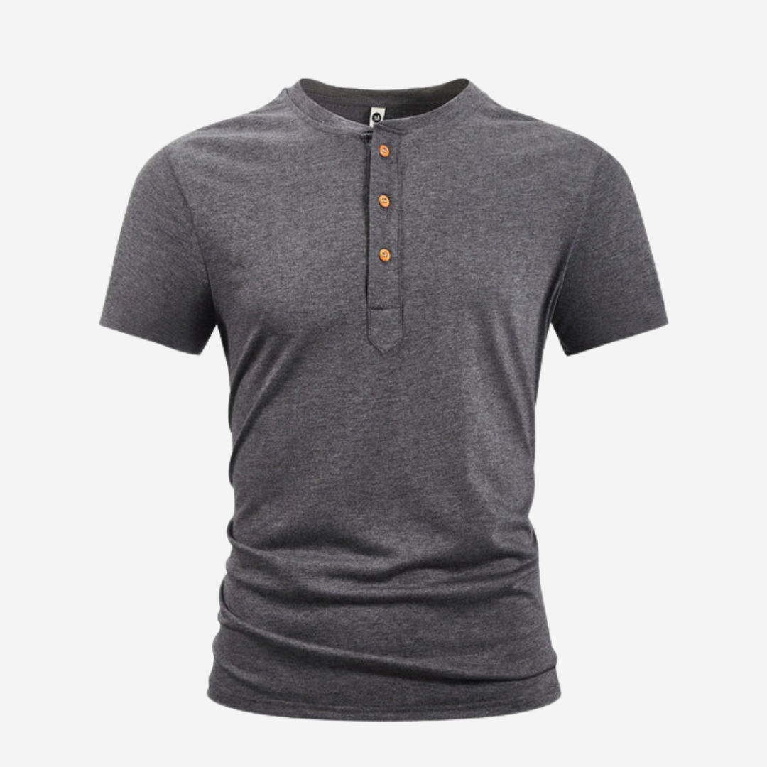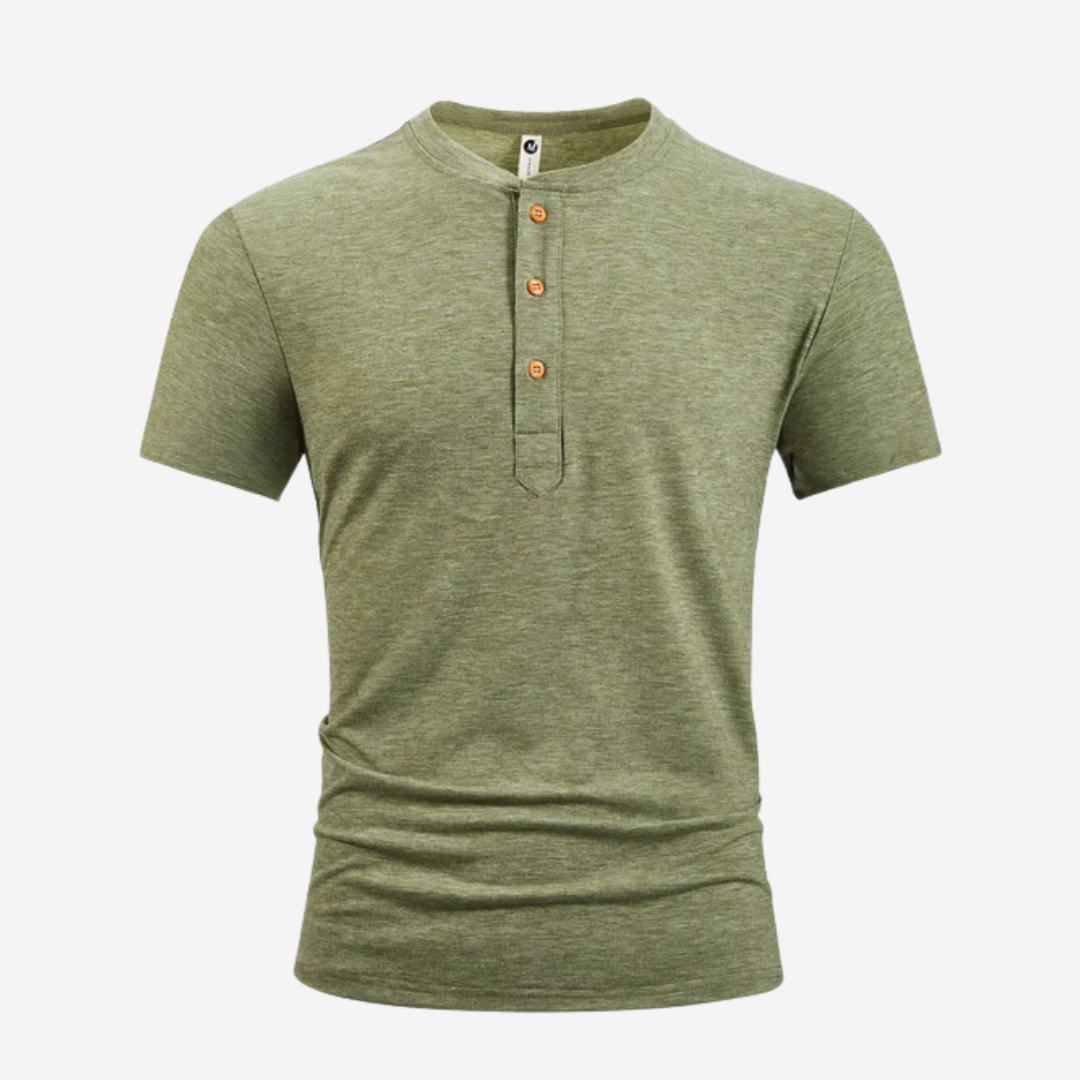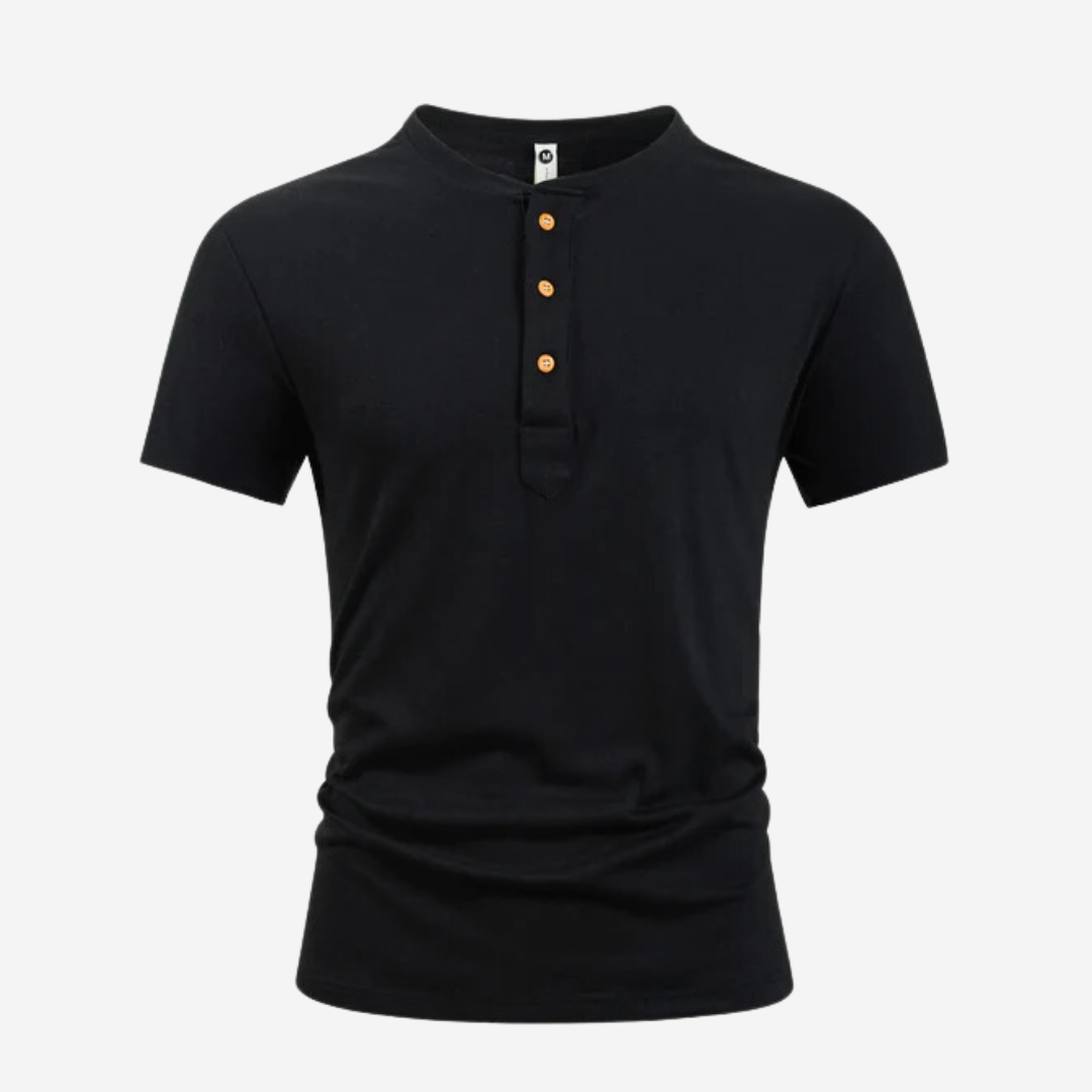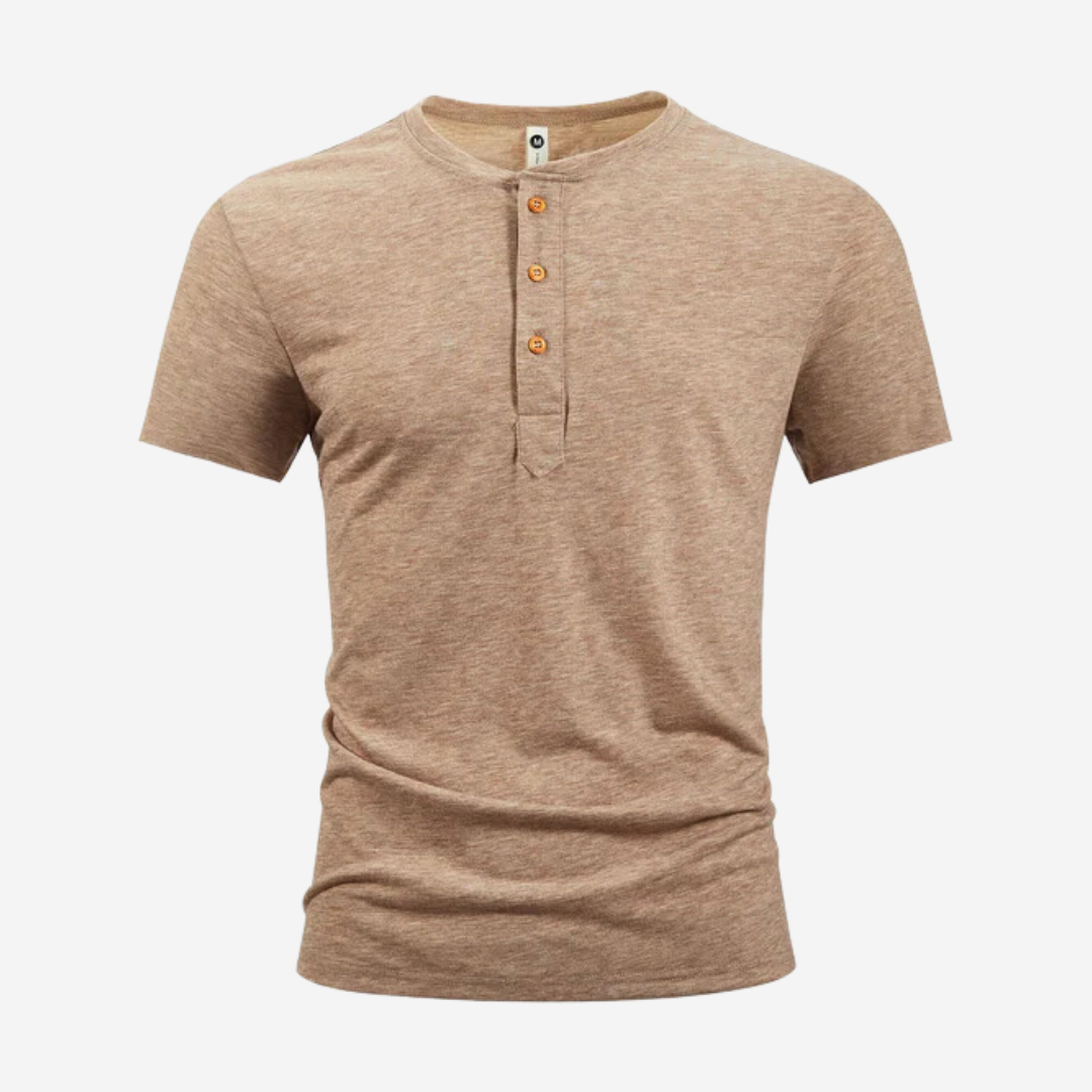 This buttery-soft 100% cotton tee boasts a classic three-button placket for a timeless look. Available in a rich palette of earthy tones, it's the perfect foundation for any outfit.