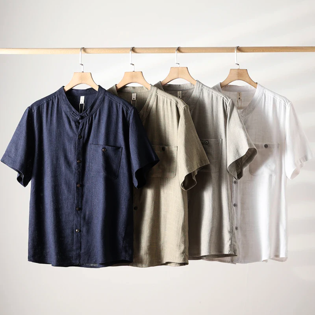 This isn't your average tee – it's a breathable blend of cotton and linen that keeps you cool, collected, and ready for adventure. From sun-soaked beaches to breezy nights, the Seaside Henley elevates your casual look with effortless coastal charm.