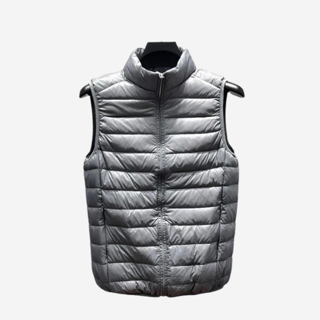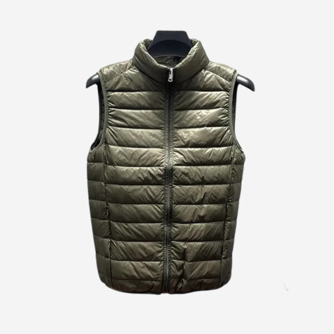 The Tom Barrett Down Gilet, a masterpiece of minimalist design and functionality. This gilet, with its 50% down filling, strikes a perfect balance between warmth and lightness, making it an essential piece for anyone seeking for comfort and warmth.