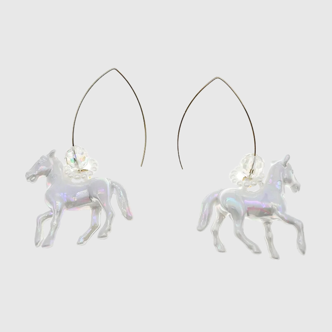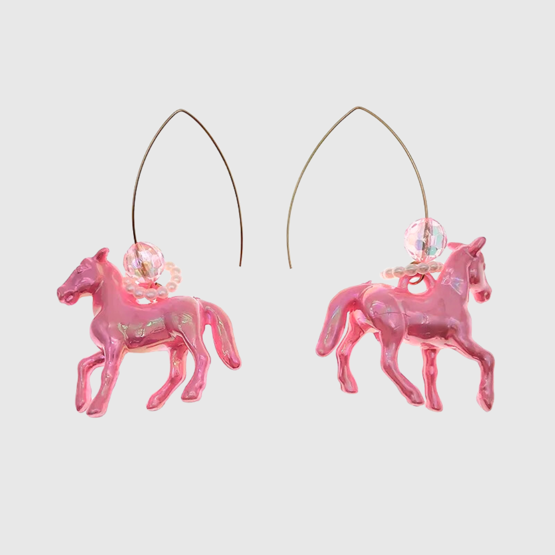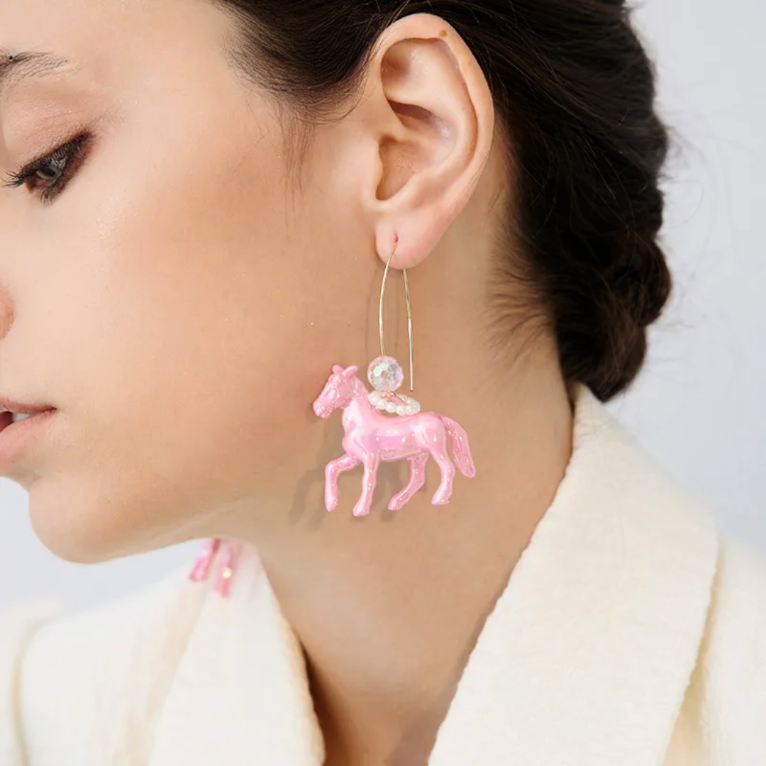 These whimsical earrings feature adorable unicorn figures in playful poses and enchanting colors, ready to add a touch of sparkle and whimsy to any outfit. The dangling design creates a playful movement that's sure to turn heads and spark conversations.