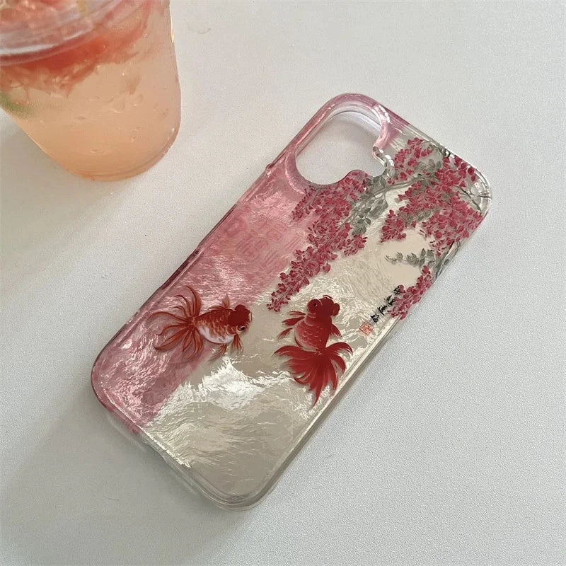 Immerse your phone in swirling calligraphy and delicate floral branches, accented by a charming koi pendant. The graceful vortex design blends tradition with modern allure, while a sturdy build shields against daily bumps.