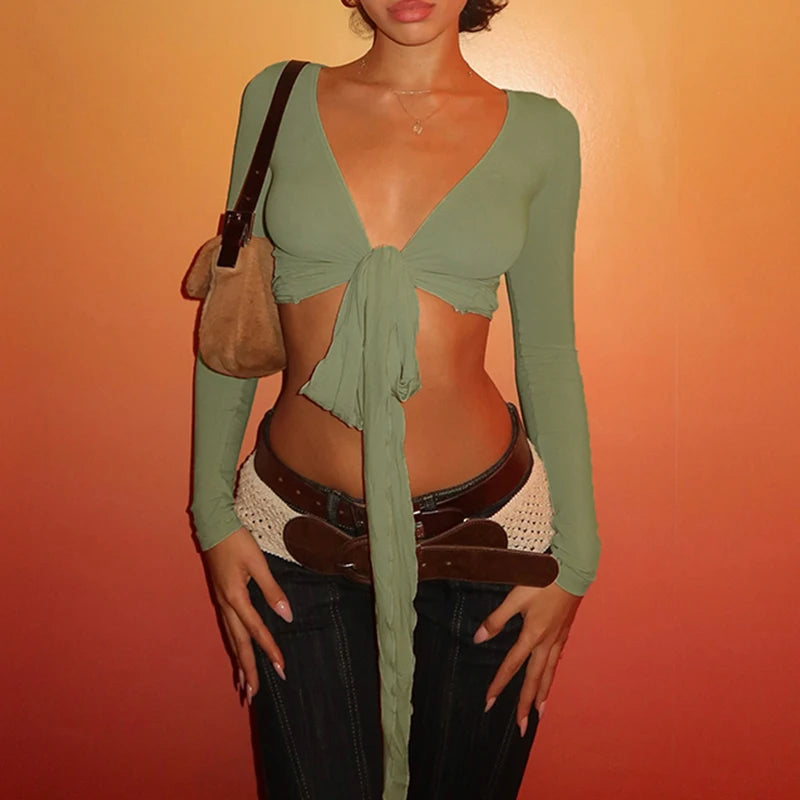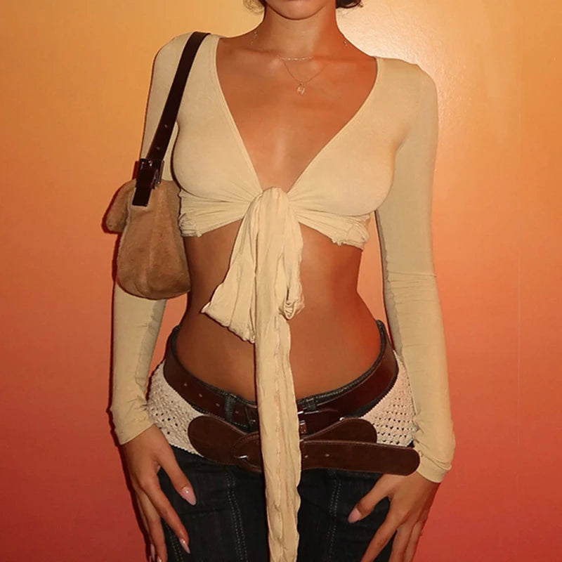 Experience a lavish blend of day-to-night versatility with this cropped tie-front silhouette. The sumptuous stretch knit contours your figure while the adjustable front exudes a refined yet playful twist. Perfect for layering or a solo statement, it radiates an understated elegance that elevates any look.