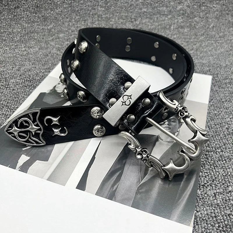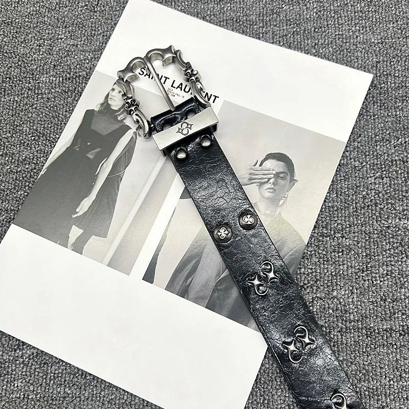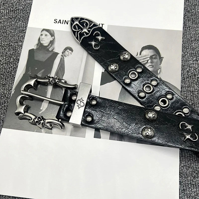 Crafted from supple black leather and adorned with intricate gothic hardware, this statement piece cinches your waist in high-end punk flair. Equal parts rebellious and refined, it instantly elevates any look—jeans, dresses, or your favorite corset.