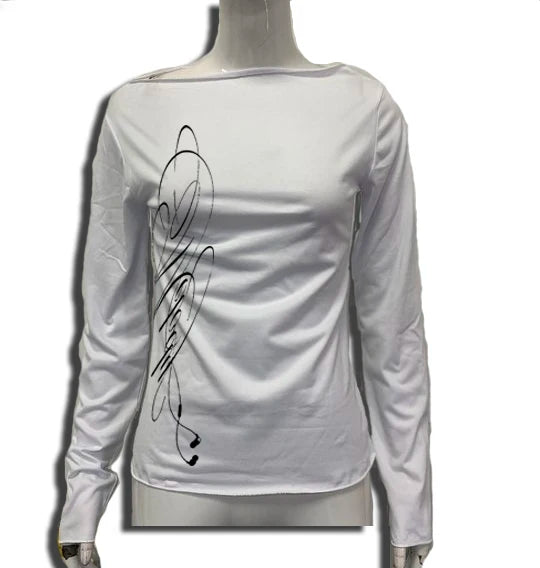 Minimalist street poetry: a clean boat‑neck tee with a single abstract ink graphic that runs down the torso. Cut from breathable cotton‑blend with a sleek, slim profile that tucks perfectly into denim or cargos.