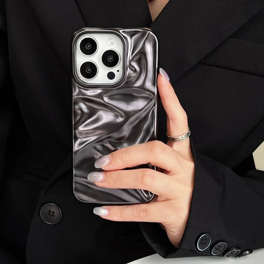 This sleek, matte cover features a sculpted, crinkled texture that exudes understated glamour. Lightweight yet shock-absorbent, it safeguards your phone while adding a modern, high-end finish to your everyday look.