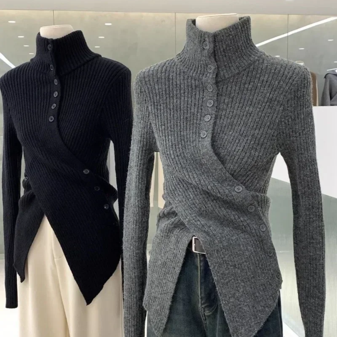The soft knit caresses your skin, the unique crossover button design adds a touch of modern flair, and the turtleneck keeps you warm and cozy all season long.