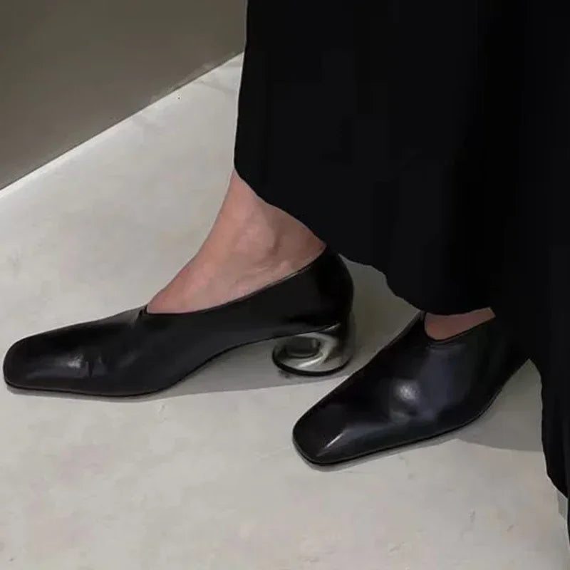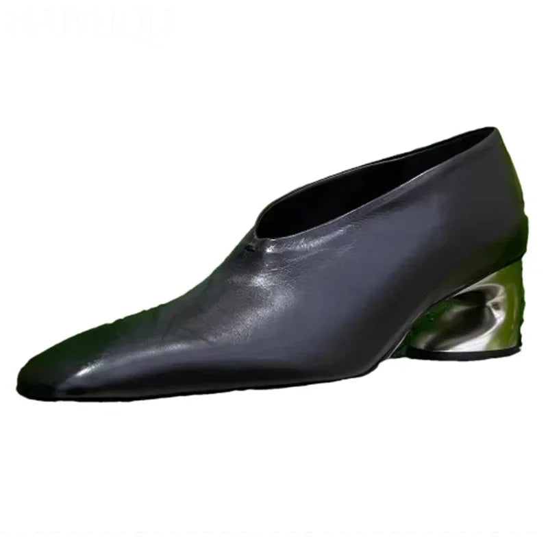These elegant sandals feature a pointed toe and a low, thick heel for both style and comfort. Crafted from luxurious leather or a high-quality synthetic alternative, they are designed to elongate the legs and provide all-day wearability. The open back adds a touch of classic sophistication.
