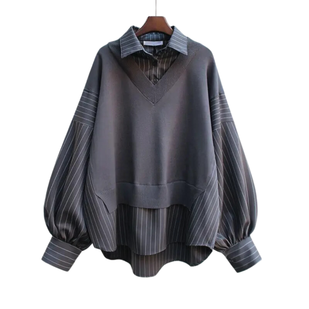 A single piece designed to give the illusion of a perfectly layered ensemble. With its faux two-piece design, featuring a contrasting collar and tie-inspired details, this blouse effortlessly elevates your look.