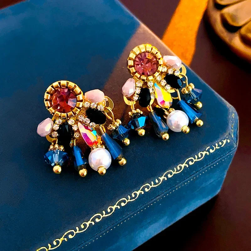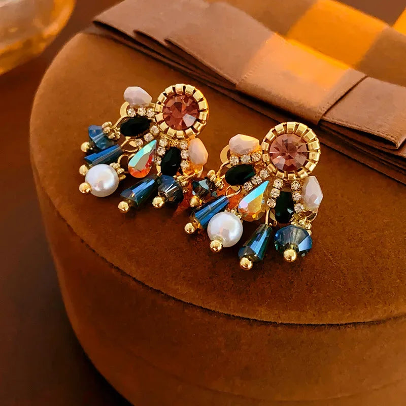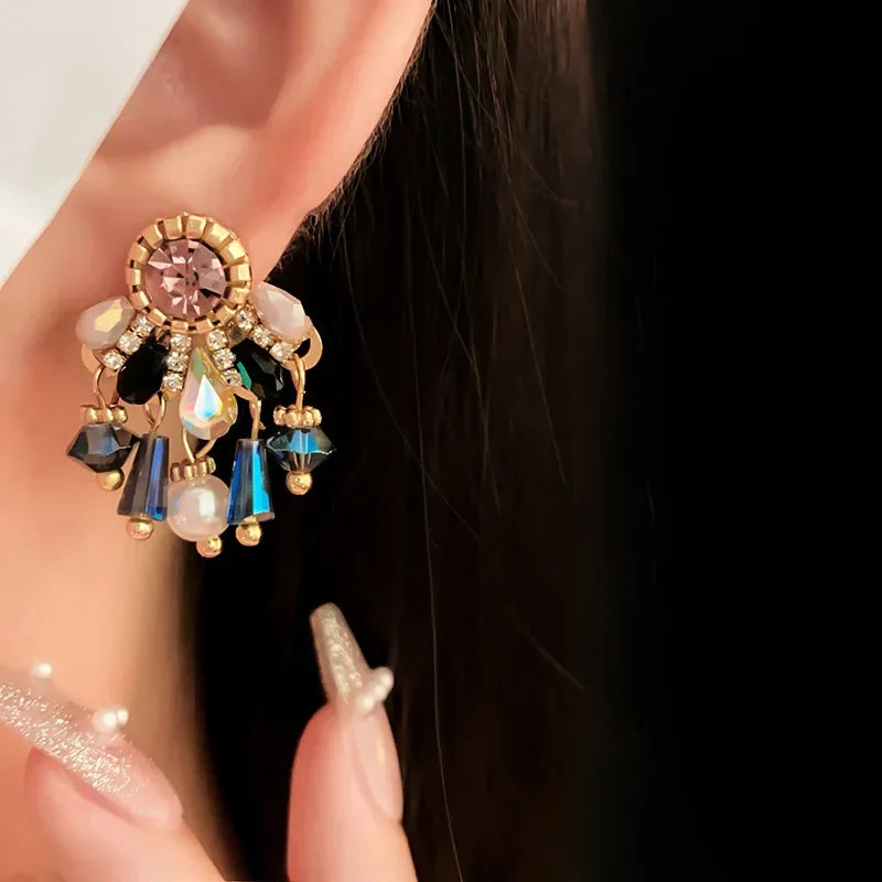 Each pair tells a story – of vibrant colors, hand-selected gemstones, and the delicate dance of light on lustrous pearls. Feel the confidence bloom as you slip them on; these earrings aren't just seen, they're felt.