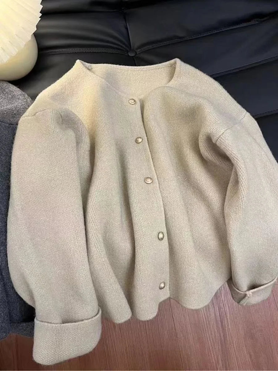 The single-breasted closure pairs beautifully with an understated O-neckline, while long sleeves offer comfortable coverage. This lightweight piece is perfect for layering in spring or autumn, adding effortless elegance to your daily wardrobe.
