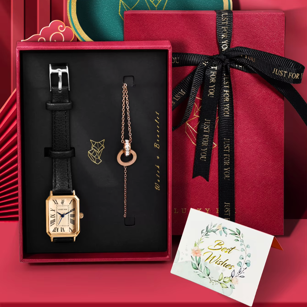 Designed with a timeless elegance that transcends trends, this set is the perfect gift for any occasion, from birthdays and anniversaries to holidays and special events. The luxurious packaging, complete with a red gift box, a key charm, and mini cards, adds an extra touch of sophistication, making it a truly unforgettable present.