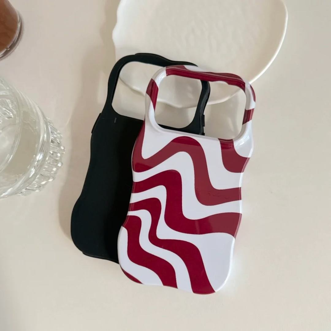 A high-gloss case finished with sculpted wave edges and bold color contrast. Clean, graphic, and designed to feel premium in hand.