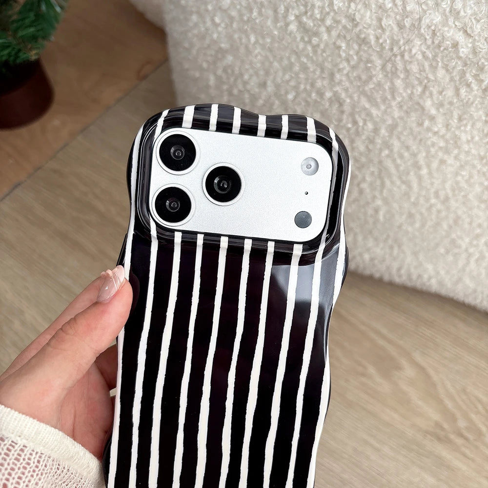 Bold vertical wave stripes paired with a glossy two-tone finish for sharp visual contrast. Clean, graphic, and built on a structured protective shell.