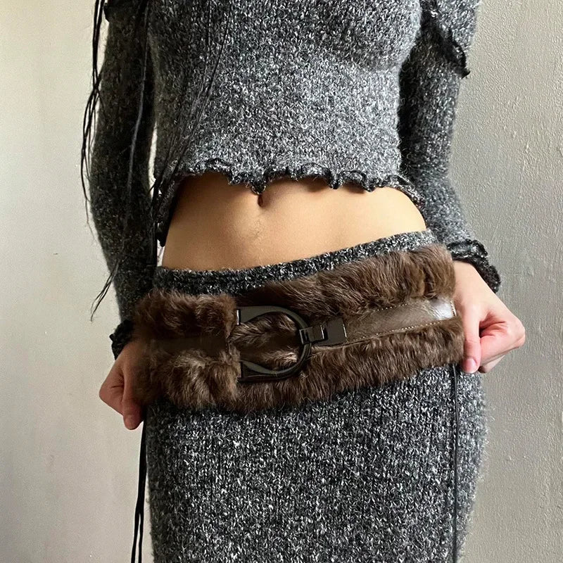 A fusion of Y2K attitude and vintage Western flair. Crafted from sleek faux leather and adorned with luxurious faux fur trim, this belt is ready to transform your look and turn heads wherever you go.