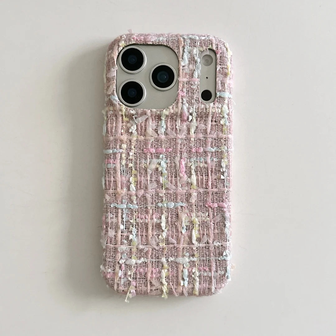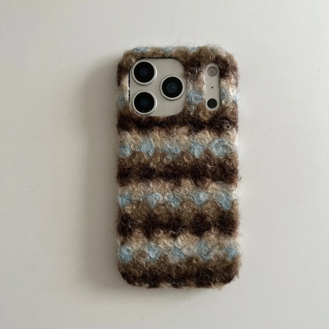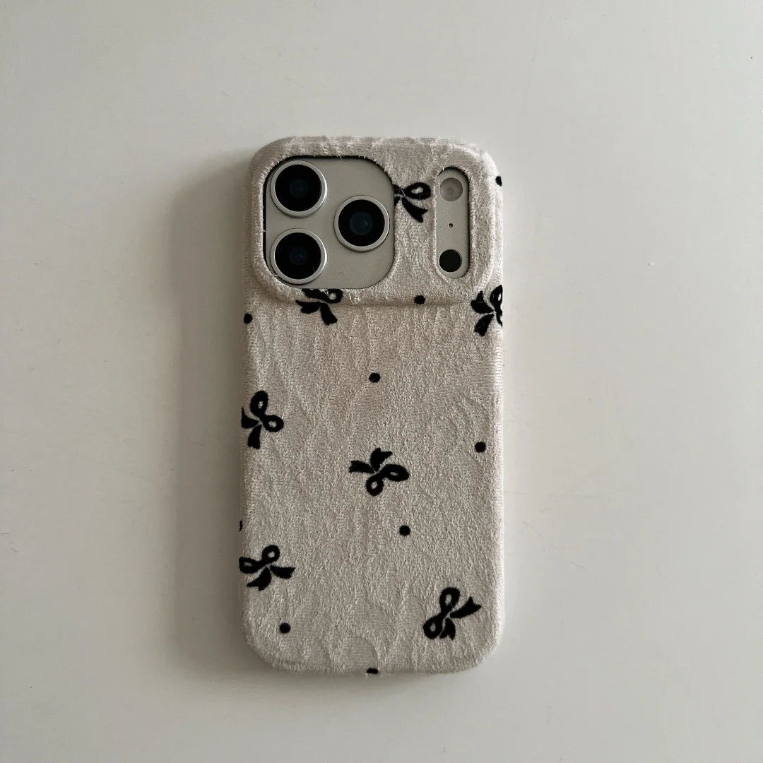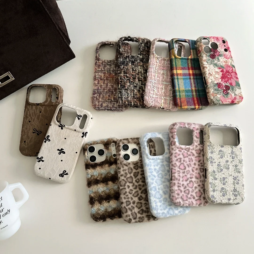 Each case is wrapped in a cozy plush fabric—leopard, tweed, bows, grid, floral—giving your phone a warm, winter sweater texture that looks adorable in mirror selfies. The soft fuzzy exterior hides a protective shell inside, keeping your phone safe while adding soft-girl, cottagecore, or vintage-aesthetic vibes.