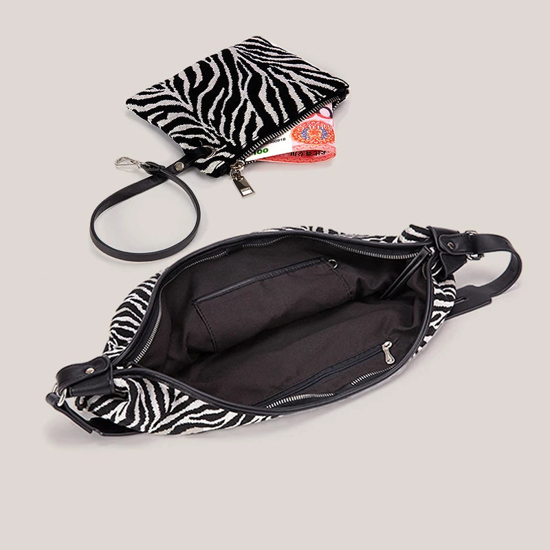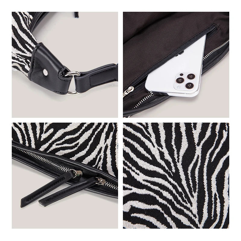 Zebra Crescent Hobo Bag